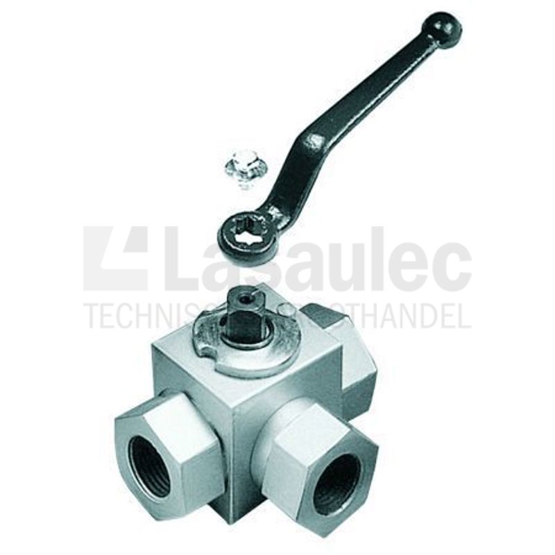 3x BSPP binnendraad. L-boring. Maximale temperatuur 100°C, teflon® kogelafdichting.
