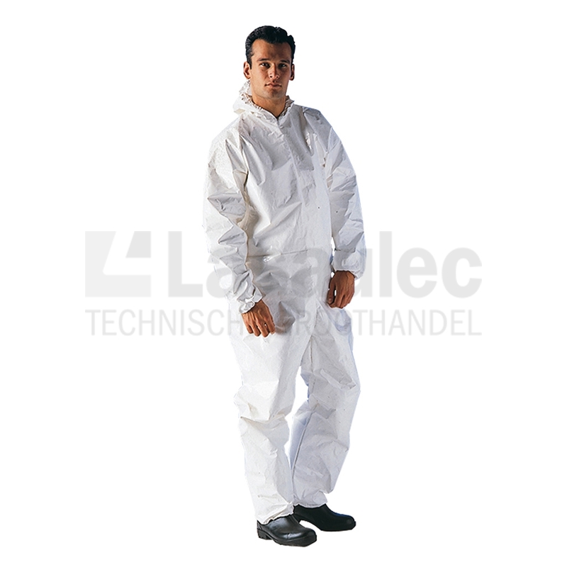 Wegwerpoverall voorzien van vaste capuchon, verdekte tweeweg ritssluiting en elastiek in de mouwen, pijpen en capuchon. Beschermt u uitsluitend tegen reinigings-, verf- en spuitwerkzaamheden van niet schadelijke aard en kan alleen worden ingezet als beschermingsmiddel voor de onderliggende kleding.