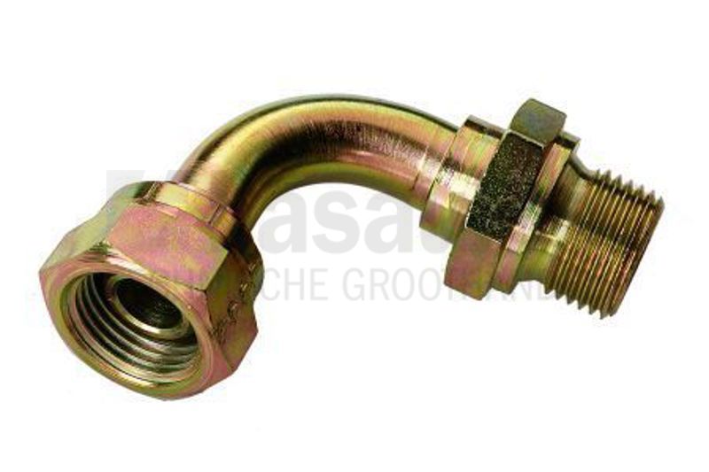 BSPP wartelende binnendraad, vlakdichtend x BSPP buitendraad, beide zijden inwendig 60° afgeschuind, haaks. Elektrolytisch verzinkt.