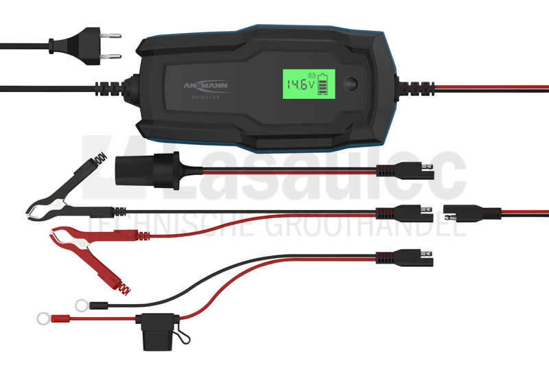 10-traps oplader voor loodzuur-, loodgel- en loodvliesaccu’s van 6 V en 12 V, evenals 12 V LiFePo4-accu’s