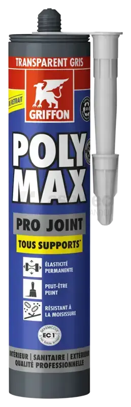 Griffon Poly Max® Sealant is een multifunctionele afdichtingskit van premium kwaliteit voor afdichtingstoepassingen binnen, buiten en in sanitaire ruimtes. Goede hechting op vele bouwmaterialen zoals beton, steen, composiet, metaal, keramische tegels, glas, (geverfd) hout en diverse kunststoffen.