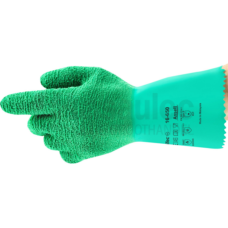 Deze handschoen is bij chemisch beschermende toepassing te beschouwen als wegwerpproduct. Voor meer informatie controleer de permeatie-gegevens voor de resistentie tegen diverse chemicalien!