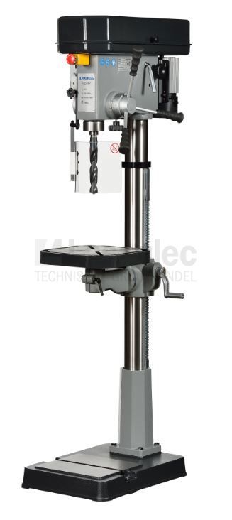 Deze stabiele en robuuste V-snaar aangedreven kolomboormachine heeft een boorcapaciteit van Ø 1-25mm, heeft traploos regelbare spilsnelheden, is voorzien van een separate noodstop en boorbeschermkap met microschakellaar.