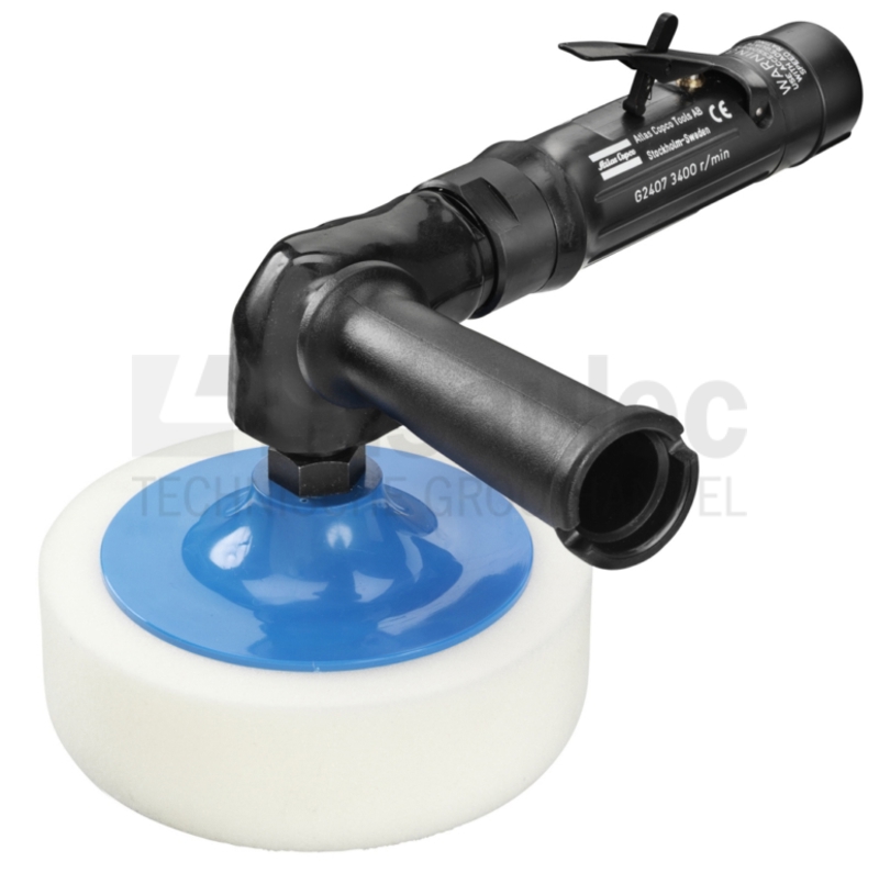 Atlas Copco haaks uitgevoerde polijstmachine voorzien van regelbare luchtuitlaat.
