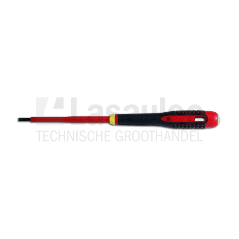 Bahco VDE geisoleerde Ergo schroevendraaier geschikt voor sleufschroeven. Uitgevoerd volgens ISO 2380 / IEC 60900, geschikt voor werken met spanningen tot 1000 volt. Geisoleerde kling uit hooggelegeerd kwaliteitsstaal, met 3-componenten handgreep voorzien van slijtvaste kleurcode aan beide uiteinden.