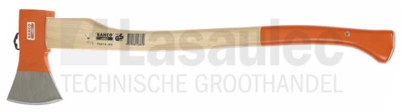 Velbijl voor het vellen van kleine bomen voorzien van gebogen essen steel, veilig bevestigd door middel van een getande koolstofvezel wig.