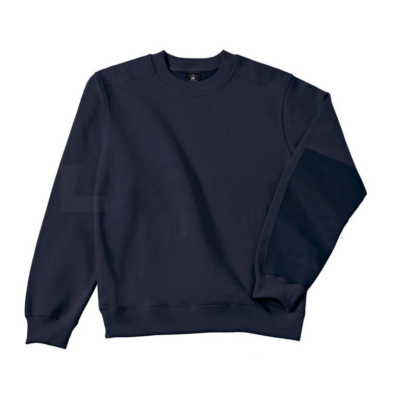 Sweater voorzien van een ronde hals, lange mouwen, fleece geborstelde binnenzijde, versterkte ellebogen voor extra stevigheid met keper toon op toon stukken, 2x2 rib versterkte hals, mouwen en tailleband met elastaan. Wassen op 60°C.