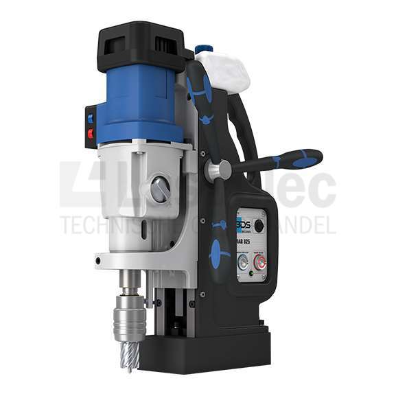 De alleskunner, ontwikkeld voor de staal-constructie- en machinebouw. Een meer complete machine kunt u zich niet wensen. Kernboren tot 100 mm, tappen tot M30, ruimen en verzinken. De MAB 825 kernboormachine / magneetboormachine is voor iedere klus inzetbaar. De makkelijk verwisselbare morse conus 3 aanlsuiting geeft nog meer flexibiliteit aan deze kernboormachine. De MAB 825 hoort met zijn olie-afgevulde tandwielbak tot de nieuwe generatie kernboormachines. Deze unieke eigenschap voorziet in een extra slijtagebescherming van de tandwielen. De MAB 825 kernboormachine wordt geleverd met automatisch koelsysteem.