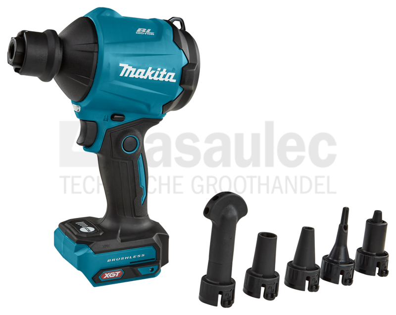 Krachtige XGT 40 V Max blaasmachine die door de verschillende standaard meegeleverde opzetstukken multi inzetbaar is. De machine is bijvoorbeeld te gebruiken voor het opblazen van strandballen en luchtbedden. Met optionele accessoire is de machine ook te gebruiken om vacuumzakken te ontluchten. Het toerental is regelbaar in vier standen