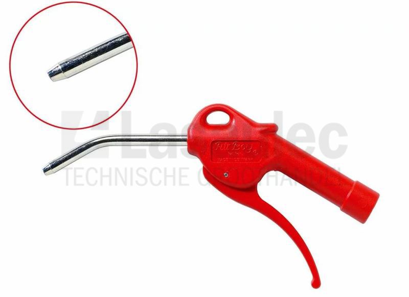 Blaaspistool voorzien van gebogen punt en een ergonomische handgreep. Binnendraad 1/4" voor aansluiting, behuizing vervaardigd uit kunststof, mondstuk van staal.