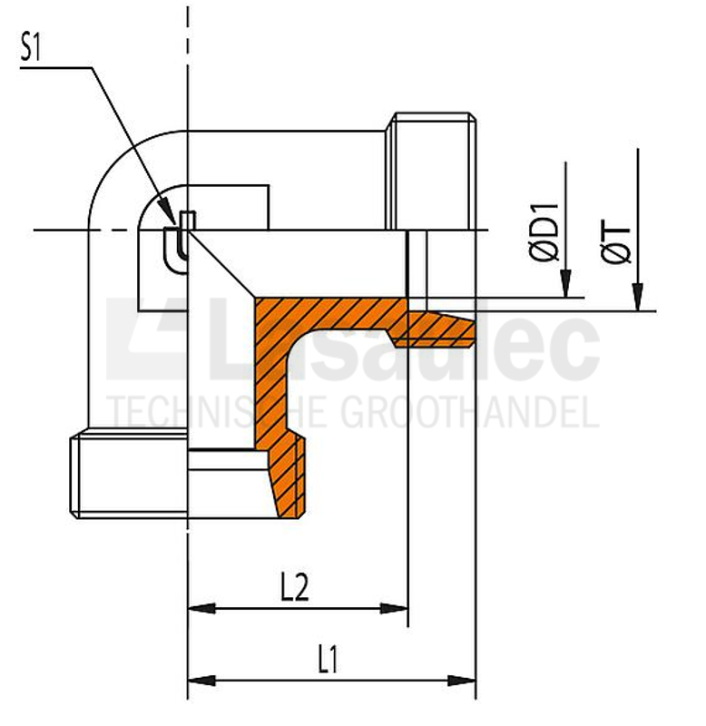 Body ten behoeve van snijringkoppeling. Haaks. Elektrolytisch verzinkt. DIN 2353.