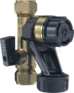 inlaatcombinatie (afsluiter, EA keerklep en ontlastklep) geplaatst moet