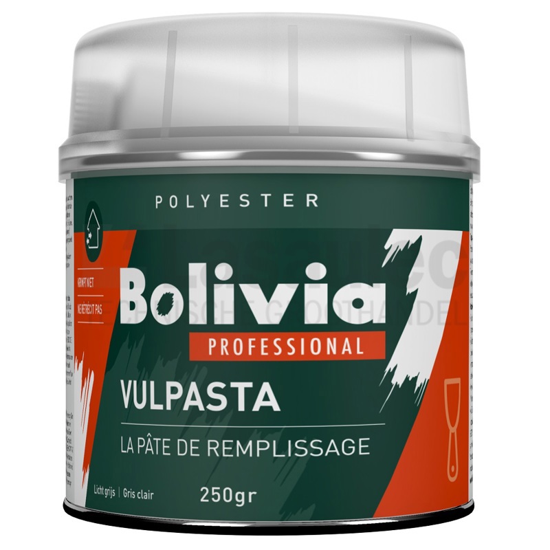 Een twee Componenten plamuur op basis van polyesterharsen. Krimpt niet, is boterfijn, werkt soepel en geeft een glad oppervlak. Voor reparatie van krassen en deuken, scheuren in carrosserie, polyester oppervlakken, voor het dichten van lasnaden, het waterdicht maken van boten, reparaties aan radiatoren, benzine- en olietanks, waterpompen, wasbakken, leidingen, metalen-, houten- en kunststof raamkozijnen, caravans etc. Ook geschikt voor het borgen van hang- en sluitwerk, het lijmen van metalen handgrepen e.d. op glas, hout, steen, metaal etc.