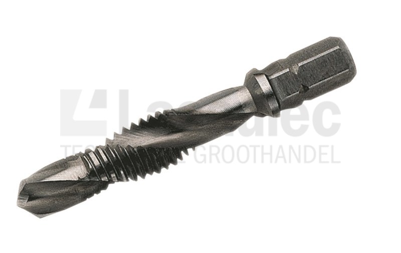 Voor het boren van het kerngat, draadsnijden en ontbramen in 1 arbeidsgang. Combi-bits zijn bestemd voor het snijden van schroefdraad met links en rechtsdraaiende accu-schoef-boormachines en handboormachines. Ze zijn ook geschikt om te tappen met een stationaire boormachine. Ze zijn toepasbaar voor de bewerking van staal, non-ferro metalen en kunststofen (tot een treksterkte van 600 N/mm²). Er kan alleen doorlopend schroefdraad tot een maximale diepte van 1 x D mee getapt worden. Ze zijn uitermate geschikt voor montagewerk of kleine series. Let erop dat de as van het gereedschap en de as van het gat in elkaars verlengde liggen en gebruik een geschikte snij-olie.