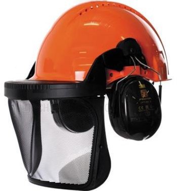 Deze Combinatieset Bosbouw bestaat uit een G3000DUV veiligheidshelm, Optime II gehoorkap, FH1 vizierhouder en een 5B gaasvizier.