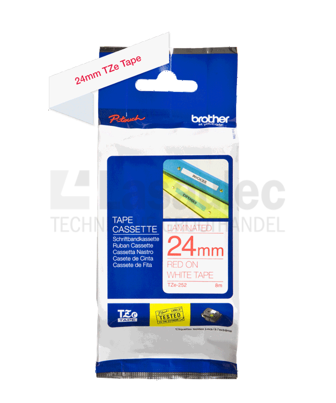 Deze originele gelamineerde TZe-252 labeltape is geschikt voor gebruik in diverse Brother P-touch labelprinters en bijzonder veelzijdig dankzij de goed leesbare rood op witte kleur – dus erg handig voor bij u thuis, op kantoor en op andere werkplekken.