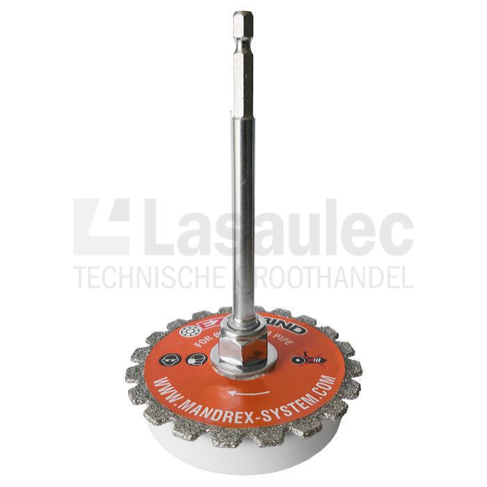 De Mandrex EzyGrind is uw veiligste keuze omdat het werkt met een accu-boormachine, terwijl het zagen van binnenuit de pijp de gebruiker beschermt tegen contact met het diamant gecoate zaagblad.