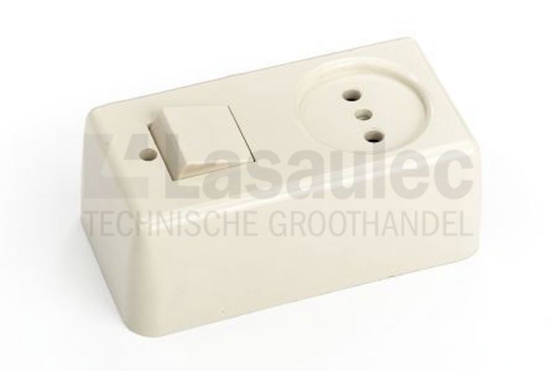 Slagvast, waterdicht IP44. Opbouw, combinatie van schakelaar en wandcontactdoos met randaarde.