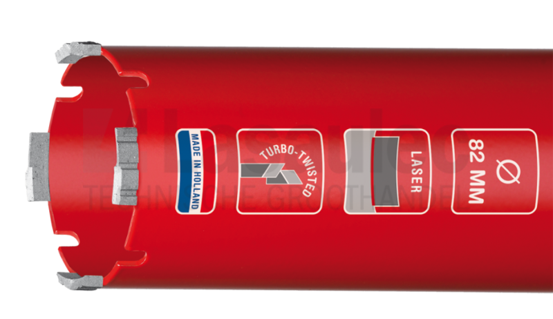 Diamantdroogboor met sleuven in de flens voor gebruik met Dustec stofafzuiging.