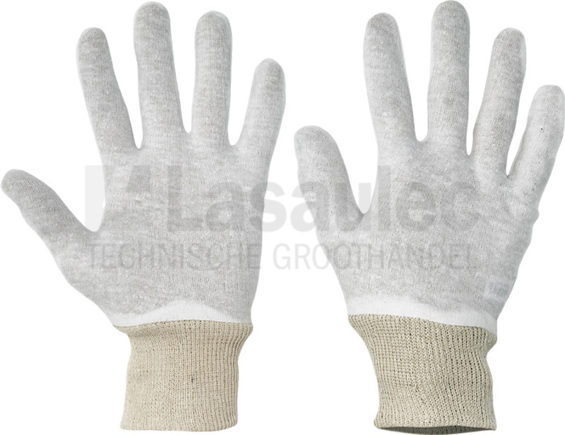 Handschoenen gemaakt van katoen/polyester met elastisch manchet.