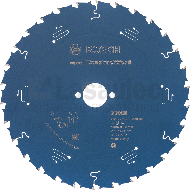 Het Expert for Construct Wood cirkelzaagblad is zeer slijtvast bij het zagen in bouwhout. De unieke, extra harde Microteq-tanden zijn in-house geproduceerd door Bosch uit zeer duurzame carbidekorrels voor grote zaagprestaties en lange levensduur. Dit wordt verder ondersteund door de combinatie van speciale tandopstelling van het blad en de brede vertanding. Voorts zorgen de speciaal ontworpen trillingsdempende sleuven voor moeiteloos zagen, met aanmerkelijk minder lawaai en aanzienlijk verminderde trillingen. Bovendien is het Expert for Construct Wood cirkelzaagblad voorzien van een b
