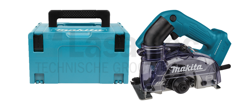 De DCC500 is een diamantsnijder voor droog gebruik met een maximale slijpdiepte van 40 mm. De machine is voorzien van een 360° draaibare stofzuigaansluiting en past op de Makita geleiderail met behulp van de optioneel verkrijgbare adapter.