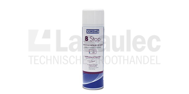 B-Stop smeermiddel bevat zeer verfijnde boornitride deeltjes in ethanol met een speciale gepatenteerd bindmiddel. Biedt een effectieve smering met een droge vliescoating. Wordt geleverd in een handige spuitbus.