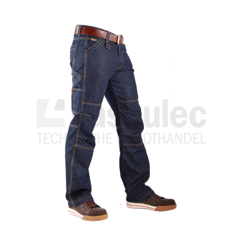 Multifunctionele spijkerbroek, regular fit met rechte broekspijp, voorzien van dubbel doorgestikte naden en diverse handige zakken zoals 2 duimstok zakken, telefoon, pen en mes zakje. Met een lichte Stonewash voor mooie representatieve egale donkere kleur.
