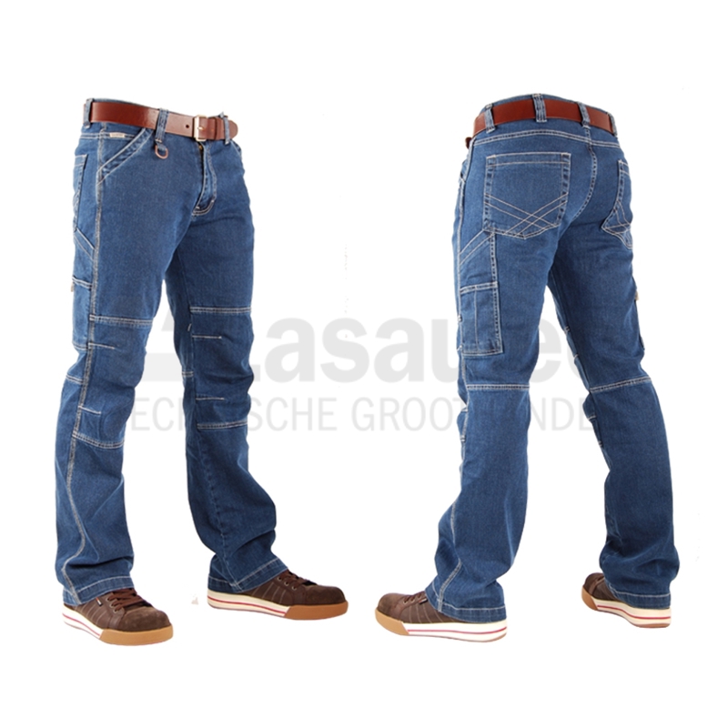 Multifunctionele stretch spijkerbroek, regular fit, voorzien van 2 achterzakken, 2 steekzakken, D-ring, 2 duimstokzakken en opbergmogelijkheden voor een pen, mes en telefoon.