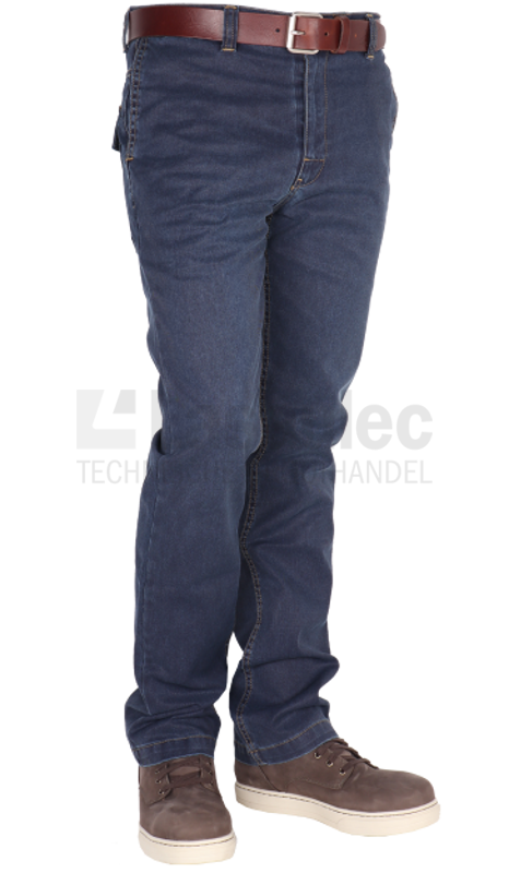 Brandvertragende, antistatische stretch jeans met lasnorm en vlamboog.
