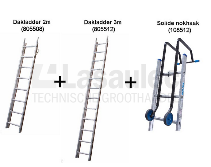 - Het is mogelijk om met behulp van de nokhaak de ladder bovenaan