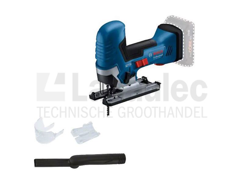 Deze accudecoupeerzaagmachine is ideaal voor het zagen van bochten en recht zagen in massief hout, spaanplaat en samengestelde houtmaterialen evenals voor dikkere of hardere materialen. De machine kan worden gebruikt met geleiderails via een adapter. De machine is compatibel met externe stofafzuiging en met alle Bosch Professional 18V-accu's en opladers (Professional 18V System).