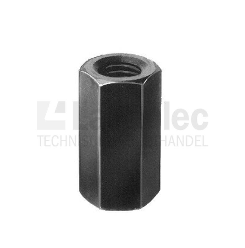 Zeskantverbindingsmoer voorzien van metrische schroefdraad.
