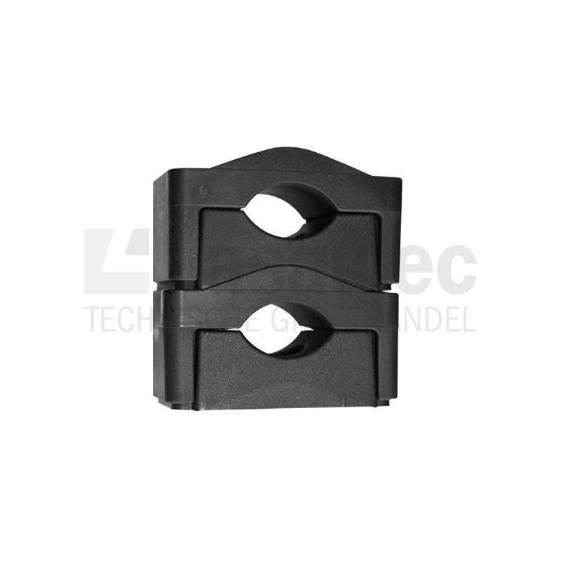 Kabelklem van glasvezelverstrekt PA voor kabel, voor enkel of meeraderige kabel in laag, midden en hoogspanning of voor buizen en slang. Bestand tegen enorme kortsluitstromen, vlamdovend, -40 - 125gr C. geen oxcidatie/corrosie, geen scherpe hoeken.