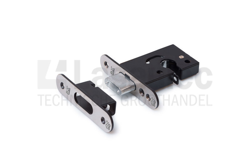 SKG insteekslot met ronde RVS voorplaat en staal zwart gelakte slotkast.