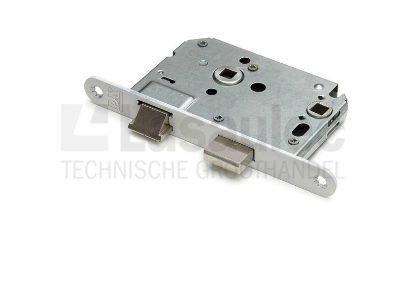 WC-badkamerslot met witte afgeronde voorplaat en staal verzinkte slotkast geschikt voor binnendeuren.