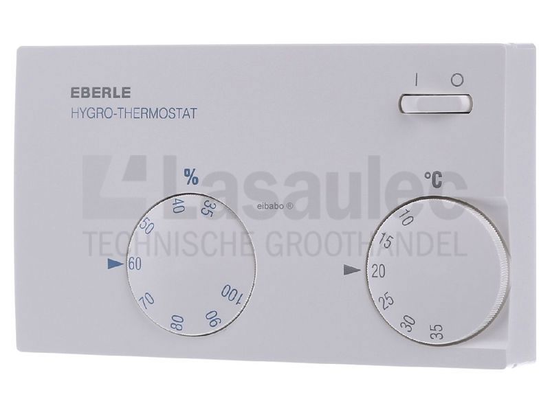 Ruimtehygrostaat met meetbereik (RV): 35 tot 100% en aan/uit schakelaar.