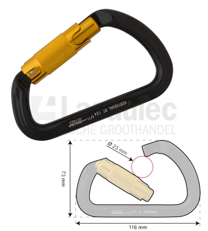 Aluminium trilockhaak type 124, voorzien van 23 mm opening.