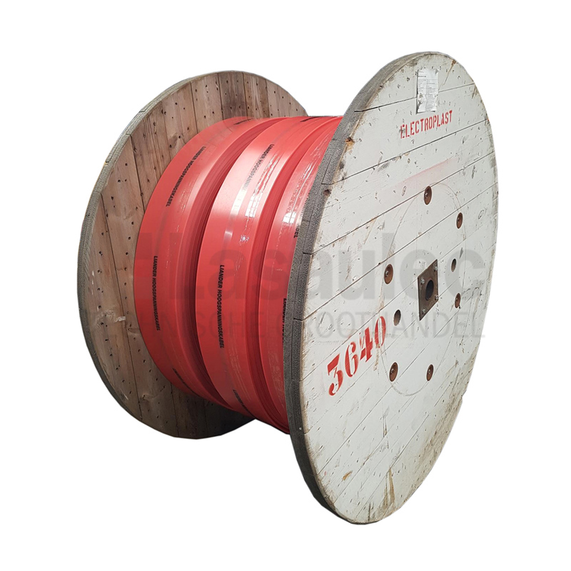 De haspel weegt 850 kg en de afmetingen zijn hoog 1855 mm en breed 1050 mm