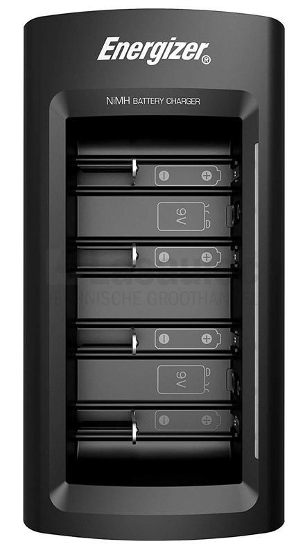 Laadtijd van 1 tot 5 uur voor AAA/AA/C/D cellen. 9V 12,5 uur.