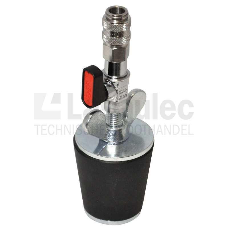 De Esders 312104 Persstop is een conisch afsluitelement met een nominale maat van 1 ½ inch, speciaal ontworpen voor het tijdelijk afsluiten en testen van leidingen. Dit model is voorzien van een praktische kogelkraan en een S21 snelkoppeling, wat zorgt voor een snelle en veilige aansluiting op testapparatuur.