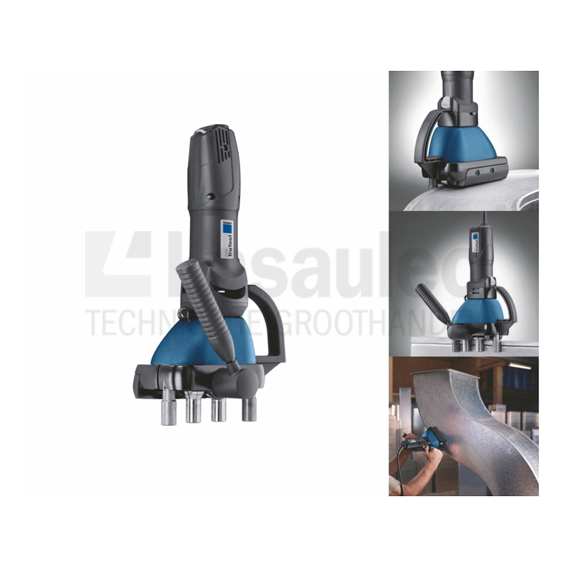 De TruTool F 300 met 1700W-motor is de perfecte machine wanneer u voornamelijk werkt met plaatdikten vanaf 1 mm van constructiestaal. Met zijn krachtige motor en hoge werksnelheid kunt u perfect Pittsburgh-felsen in rechte en gebogen kanalen sluiten. De aanpassing aan plaatdikten van 0,75 - 1,25 mm constructiestaal gebeurt automatisch. Daarmee bereikt u een hoge, dicht verbonden felskwaliteit