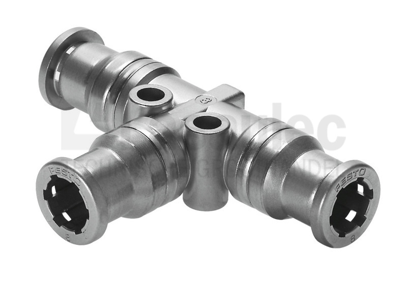 T-insteekkoppeling met Push-Pull-principe en standaard bouwgrootte.