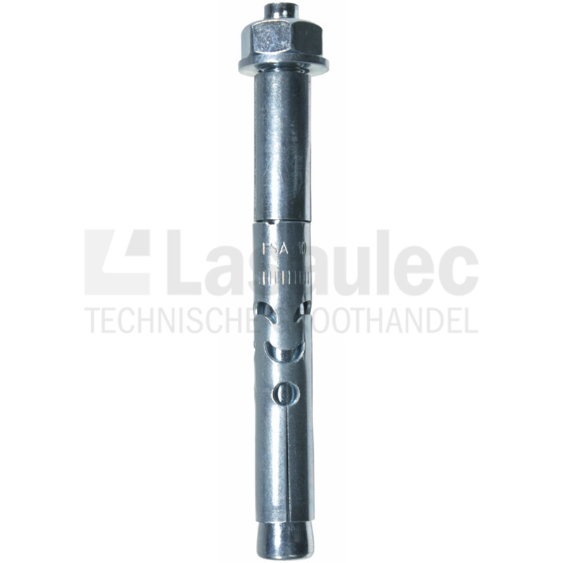 Het fischer Hulsanker FSA-B is een anker van gegalvaniseerd staal met moer en onderlegring voor constructieve verankeringen van gegalvaniseerd staal. Het fischer Hulsanker is ideaal voor de bevestiging van niet-veiligheidsrelevante verankeringen zoals van consoles, leuningen, kabelgoten in ongescheurd beton. De geoptimaliseerde ankergeometrie biedt een groot overdwars draagvermogen en een grote mate aan veiligheid. De FSA-B wordt in de tijdsbesparende doorsteekmontage aangebracht. Bij het aandraaien wordt de conus in de spreidhuls getrokken en spant deze tegen de wand van het boorgat. De ponsgaten nemen de aandraaislip net als een kreukelzone op. Zo wordt het montagestuk tegen het verankeringsmateriaal getrokken.