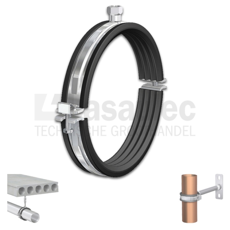 Flamco beugel voorzien van rubber inlage, geschikt voor alle soorten buis aan muur of plafond.