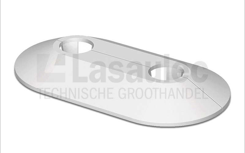 Dubbele buisrozet voorzien van klemlippen en zwaluwstaartverbinding, vervaardigd uit polypropyleen.