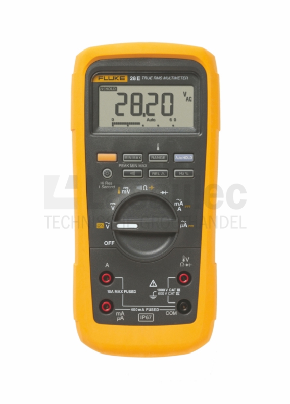 Water, stofdichte en stoot bestendige multimeter geclassificeerd volgens IP 67 voor gebruik in de meest veeleisende omgevingen met een bedrijfstemperatuur bereik van -15 °C tot + 55 °C (5 °F tot 131 °F, -40 °C gedurende maximaal 20 minuten) bij een relatieve vochtigheid van 95% en zijn ontworpen en getest om een val van 3 m te kunnen doorstaan.