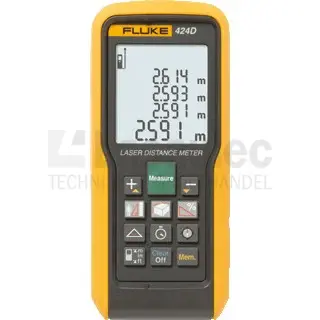 Zeer geavanceerde laserafstandsmeter met veelzijdige functies waarmee u veel tijd kunt besparen. De Fluke 424D heeft een extra heldere laserstraal en kan met één knop direct meten tot 100 m (330 ft) met een grote nauwkeurigheid van 1 mm (0,04 inch). Deze gebruikersvriendelijke laserafstandsmeter heeft een eenvoudige, automatische rekenfunctie voor oppervlakte en volume en kan gemakkelijk optellen en aftrekken. Dankzij de Fluke 424D worden meetfouten gereduceerd, wat zowel tijd als geld bespaart.
