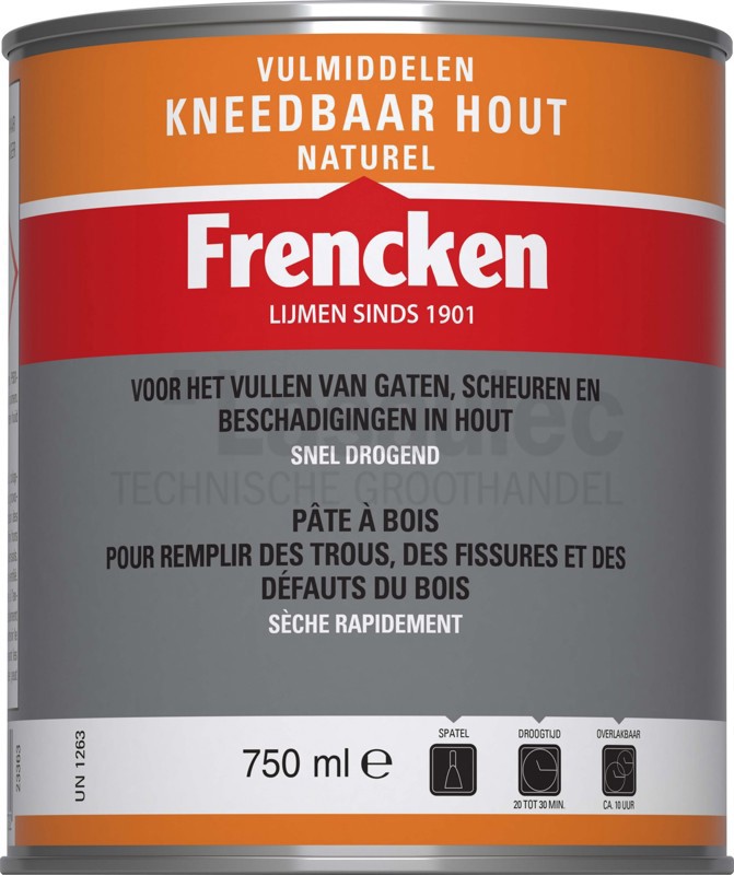 Een gebruiksklaar, oplosmiddel gebaseerd houtvulmiddel in diverse actuele kleuren. Het Kneedbaar hout van Frencken staat bekend om zijn snelle droging in combinatie met een minimale krimp. Dit is voor vele professionele gebruikers voldoende reden om het kneedbaar hout, vaak op grote schaal, toe te passen.