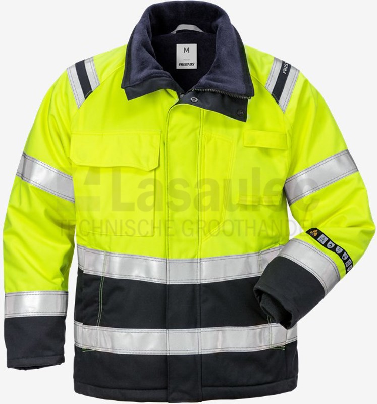 Vuil-, olie- en waterafstotend / Volledig gevoerd met fleece in de body en zijdeachtige, zachte gewatteerde voering in de mouw / Reflecterende details op de schouders / Sluiting voorzijde met rits tot aan de bovenkant van de kraag en verdekte drukknoopsluiting / Kraag met fleecevoering en drukknoopsluiting voor het bevestigen van een capuchon, 125064 / 1 borstzak met plooi, D-ring aan de binnenkant, pennenlus en verdekte drukknoopsluiting / 1 borstzak met ritssluiting / Knopen en lus voor een mes op de linkerborst. / Portofoonhouder links op de voorkant / 2 met fleece gevoerde zakken aan de voorkant met rits / Zak van A4-formaat met telefoonzak binnenin die van buitenaf toegankelijk is / 2 binnenzakken, 1 met knoop en 1 telefoonzak met klittenbandsluiting en lus voor headset / Elastische manchetten in de mouwen / Verlengd rugpand / Verstelbaar trekkoord in tailleboord / Bedrukkersrits in voering voor eenvoudig borduren en bedrukken / Goedgekeurd volgens EN 61482-1-2 klasse 2, EN 61482-1-1 hoofdmateriaal EBT: 26,4 cal/cm² HAF: 93,4% (zie tabel voor vlamboog-gecertificeerde kledingcombinaties volgens open arc volgens EN 61482-1-1), EN ISO 11612 A1 B1 C1 E2 F1, EN ISO 11611 A1 klasse 1 (zie tabel Vlambescherming en lassen voor gecertificeerde kledingcombinaties), EN 1149-5, EN 13034 type PB [6], EN 342 en EN ISO 20471 klasse 2 - maten XS-S en klasse 3 - maten M-3 XL / Goedgekeurd na 25 wasbeurten / Getest voor industrieel wassen volgens ISO 15797 / OEKO-TEX® gecertificeerd.